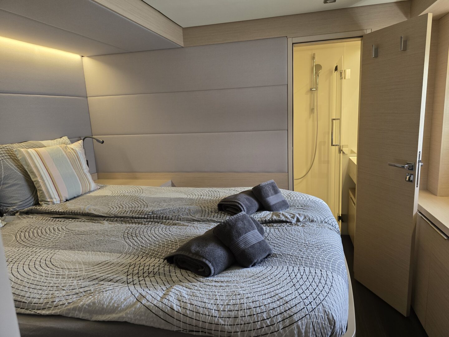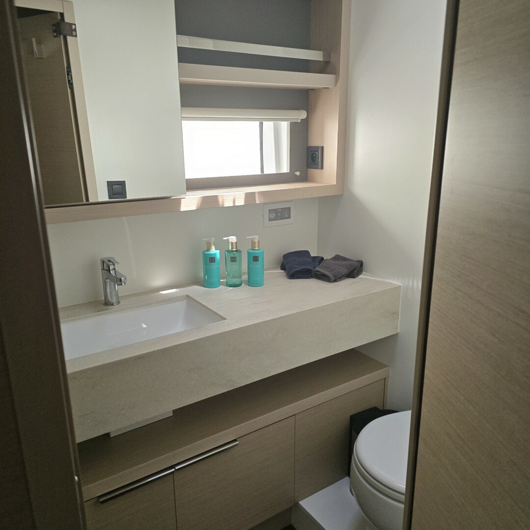 Emilia ist eine 5 Hütten, 18.32 Füße Catamaran (Lagoon 55).