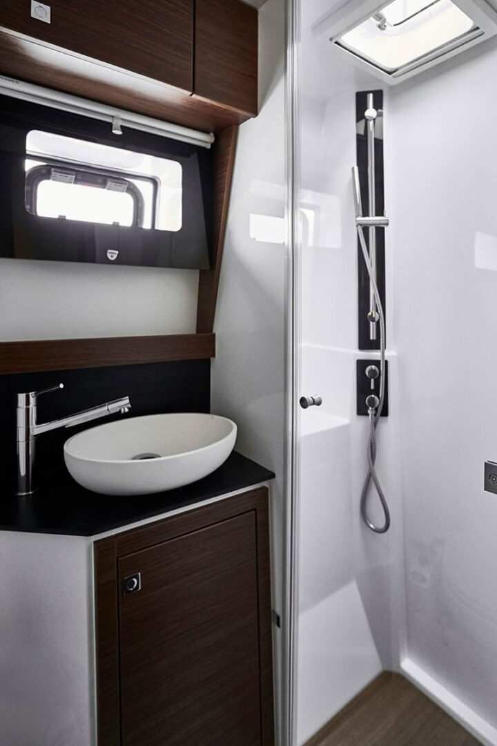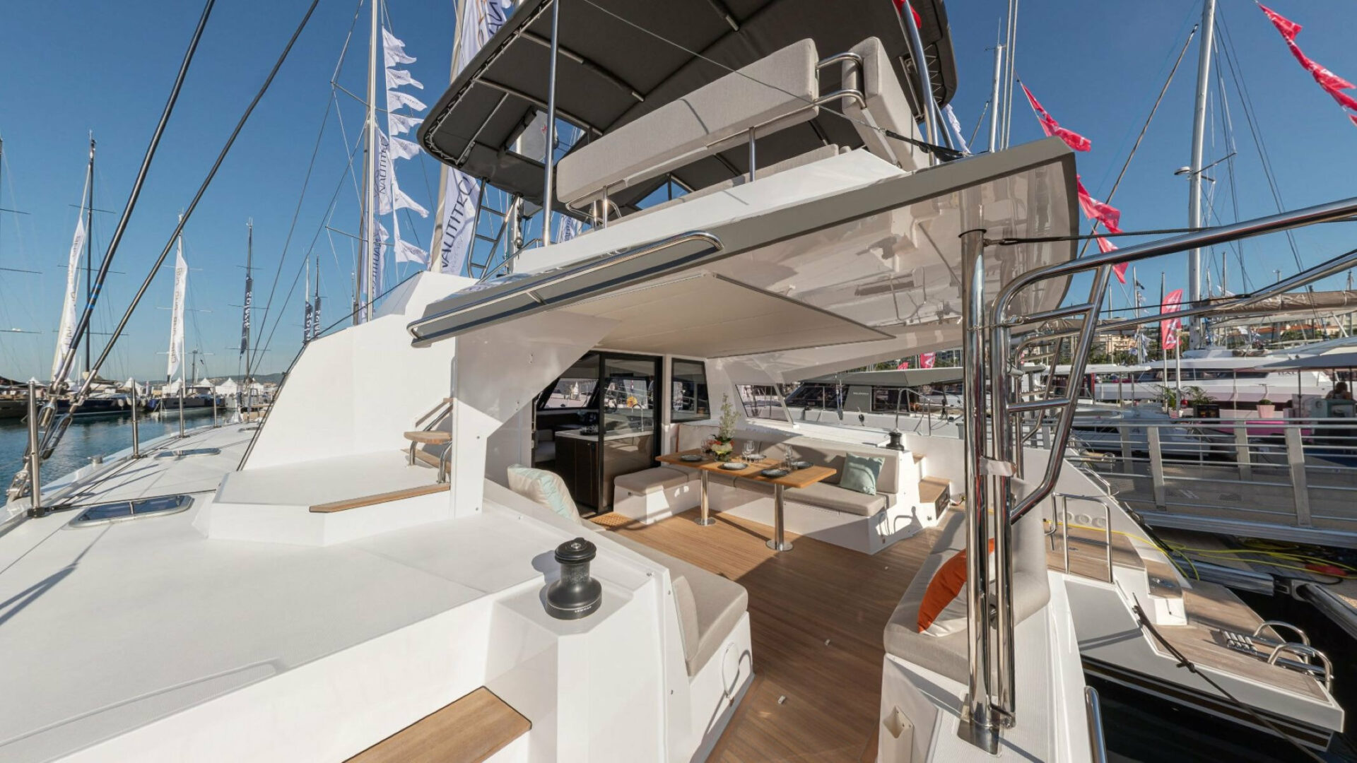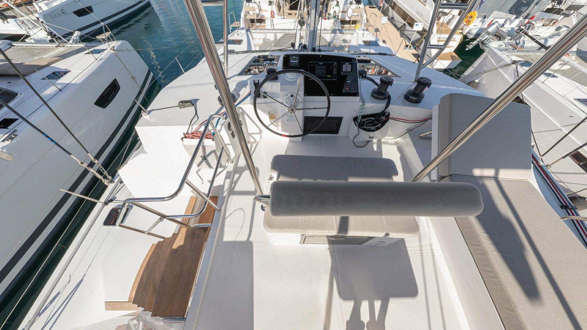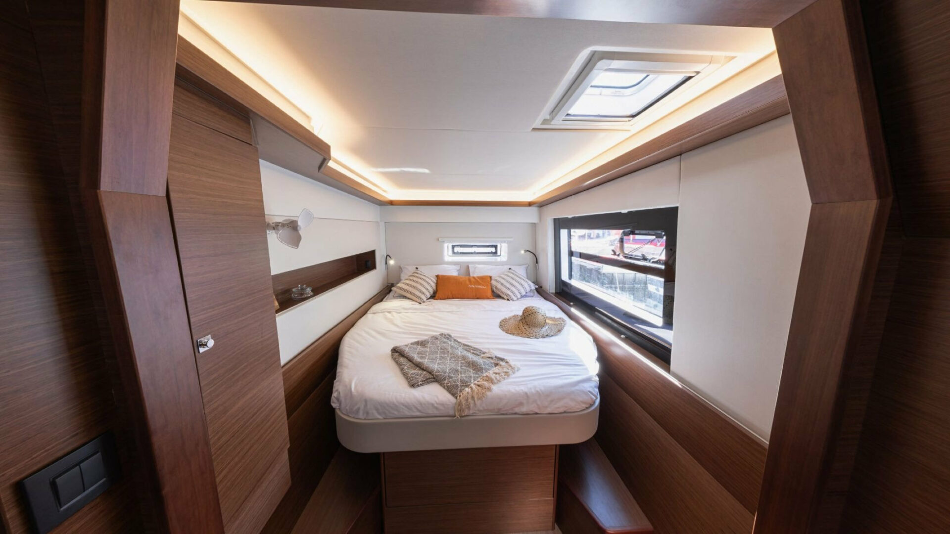 IQ is a 4 cabins, 14.00 feet Catamaran (Nautitech 46 Fly).