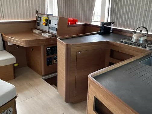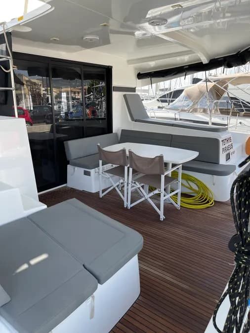 Tethys is a 6 cabins, 12.94 feet Catamaran (Lagoon 42).