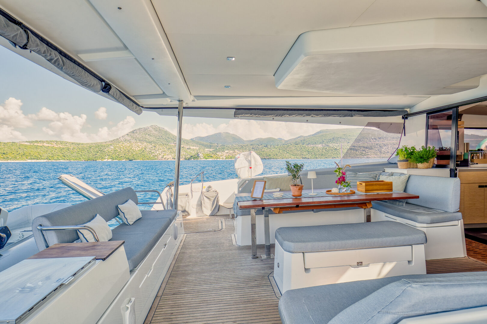 Dione II is a 6 cabins, 15.54 feet Catamaran (Aura 51).