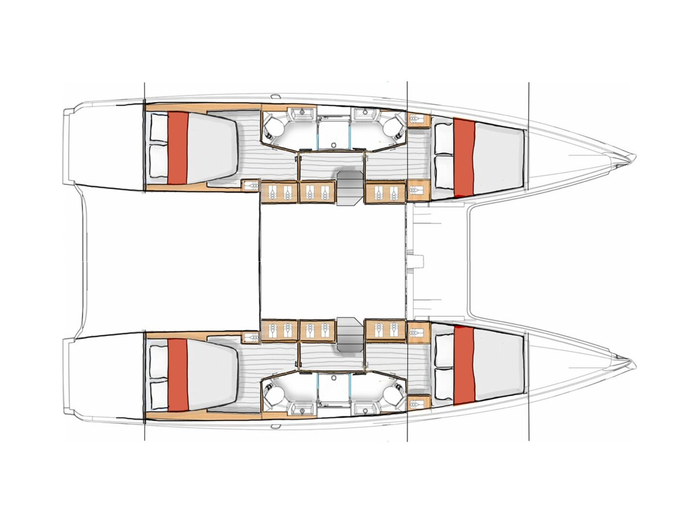 One Journey is a 6 cabins, 12.99 feet Catamaran (Excess 13).