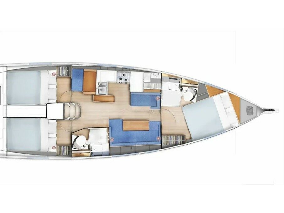 Sunset is a 4 cabins, 14.98 feet Sail boat (Sun Odyssey 49DS).