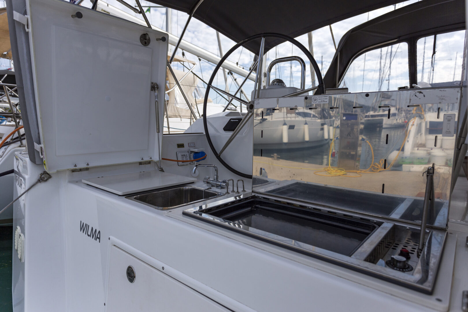 Wilma is a 5 cabins, 14.15 feet Sail boat (Dufour 460 Grand Large).