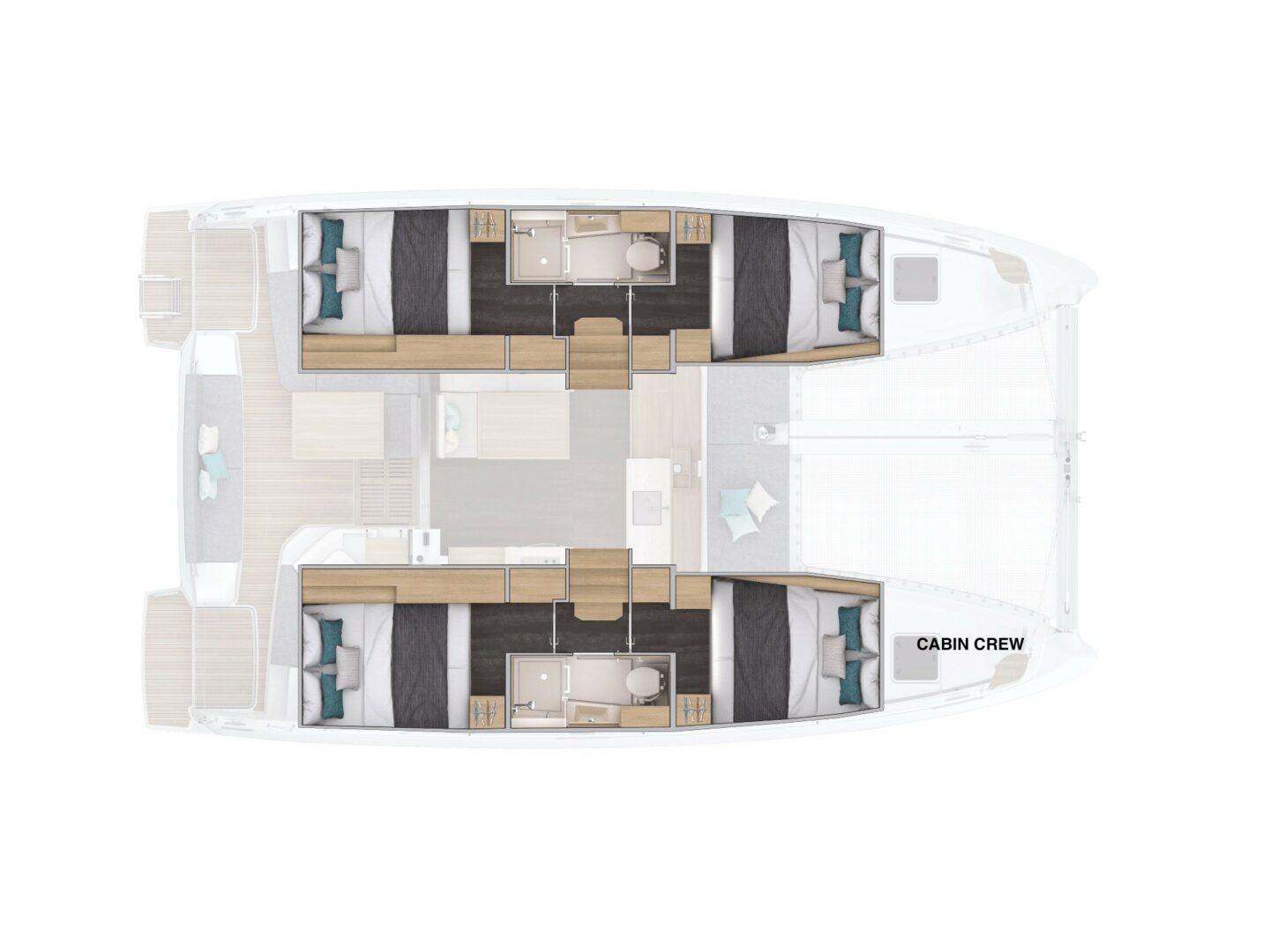 Why Not 22 is a 4 cabins, 11.38 feet Catamaran (Lagoon 38).