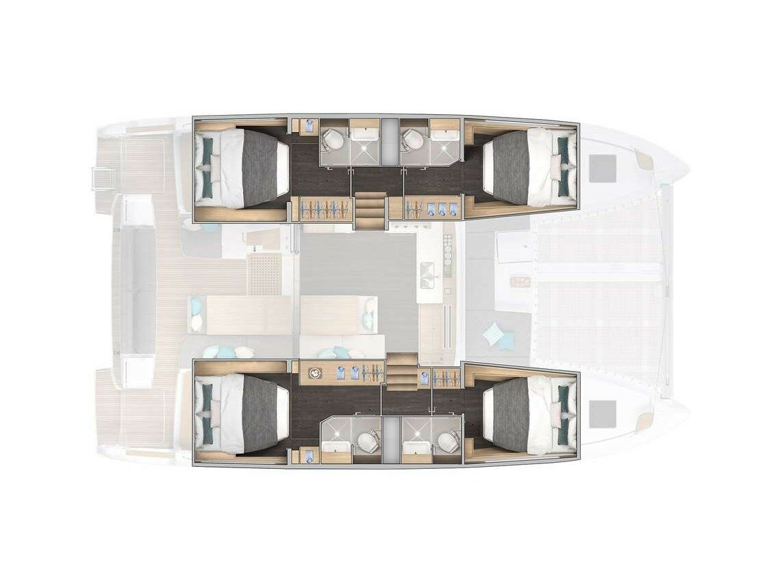 Solara is a 6 cabins, 13.85 feet Catamaran (Lagoon 43).