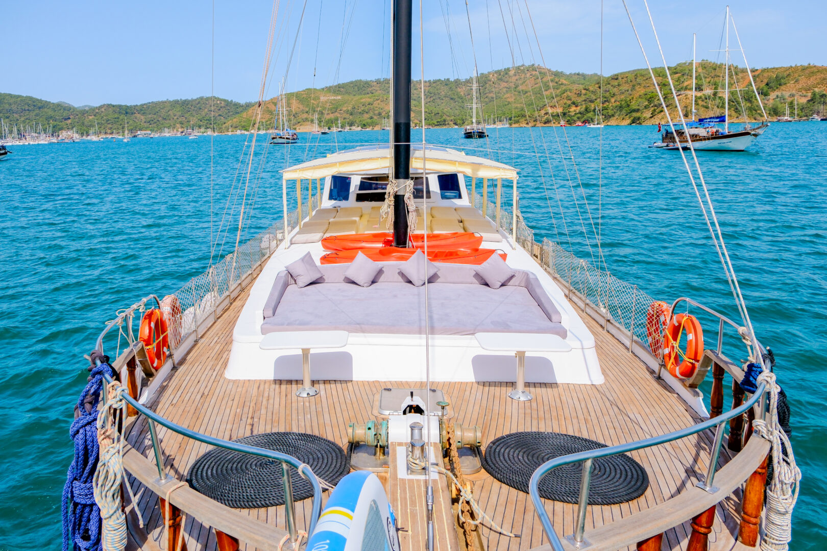 It was built in 1991 and is based in Fethiye, Turkey. The yacht can accommodate up to 14 guests and offers 14 berths, 6 toilets and showers.