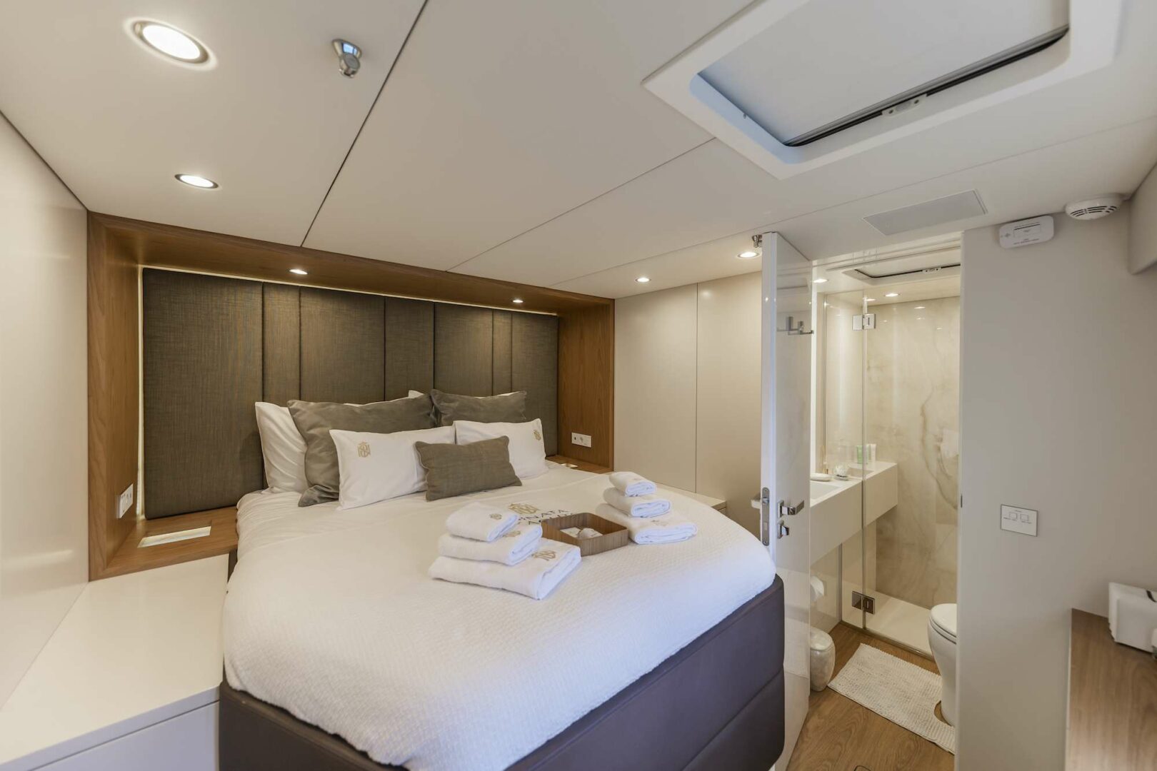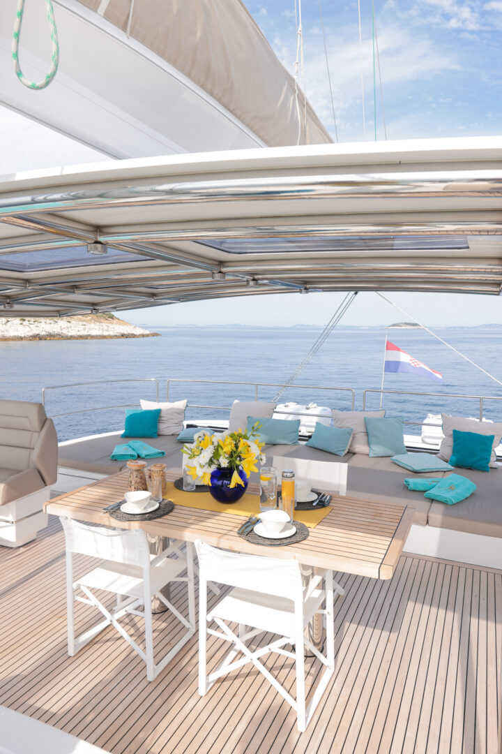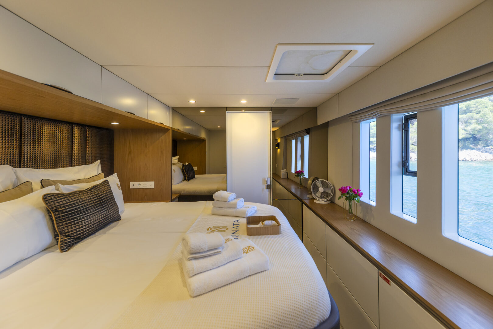 SINATA is a 4 cabins, 18.30 feet Catamaran (Sunreef 60).