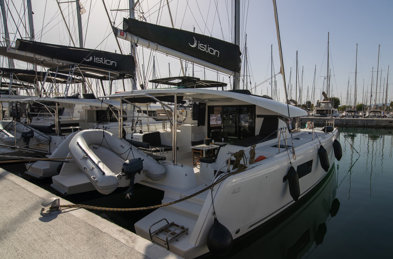 Karteria is a 6 cabins, 12.80 feet Catamaran (Lagoon 42).