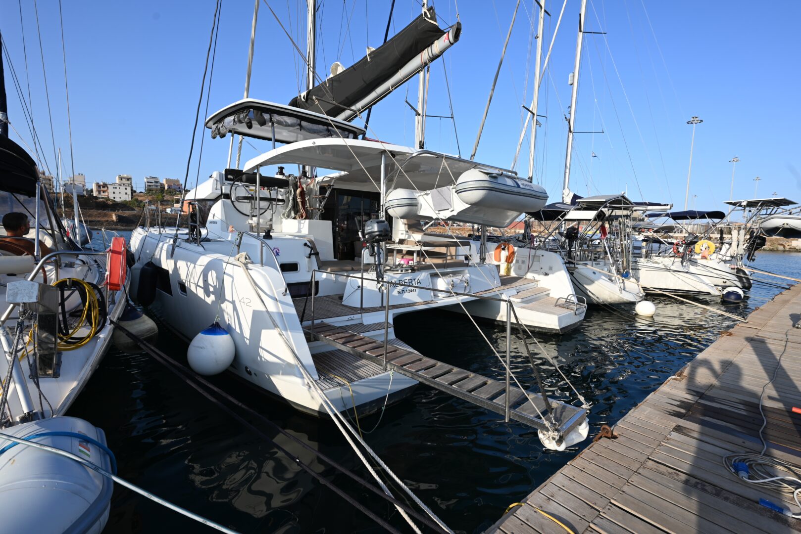 Alberta is a 4 cabins, 12.94 feet Catamaran (Lagoon 42). It was built in 2020 and is based in Lefkada, Greece. The yacht can accommodate up to 12 guests and offers 12 berths, 4 toilets and showers.